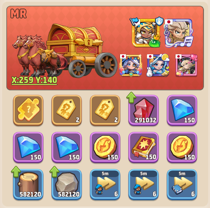 6. MR馬車が出た後、更新をタップするとレア度を落とさずアイテムを更新することができます。