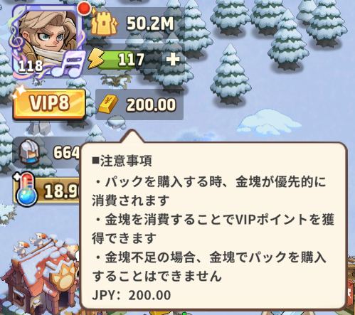 手に入った金塊はキャラクターアイコンの右下に表示されます。