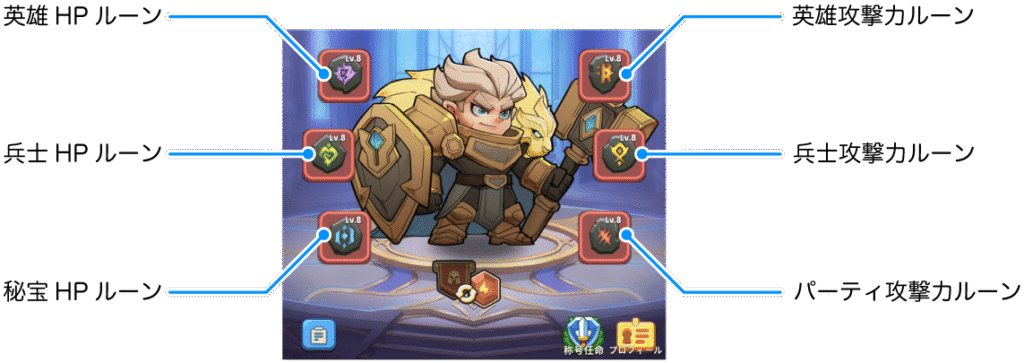 ルーンとは、英雄や兵士、秘宝の性能を上げるステータスです。