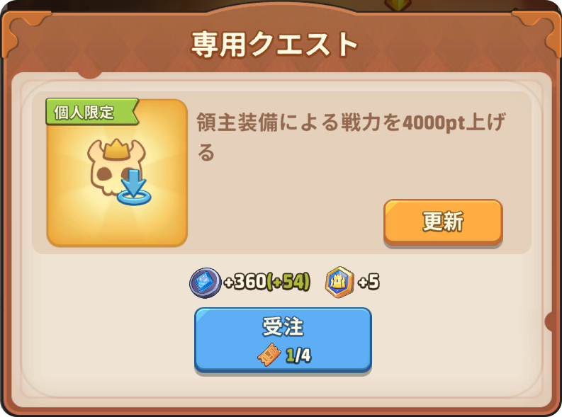 また、ギルドコンテスト中に領主装備試練というイベントも合わせて発生されており、お得に資源や装飾品を手に入れることができるの、貯め込んで一気に放出しちゃいましょう(*’ω’*)